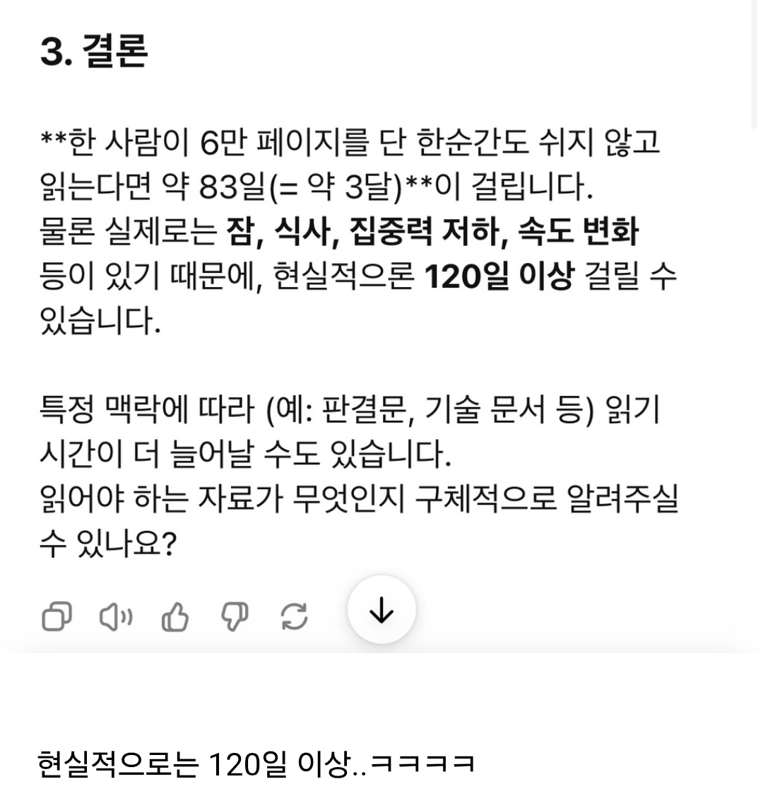 놀라운 속독능력에 놀라 여시들도 지피티한테 물어봄