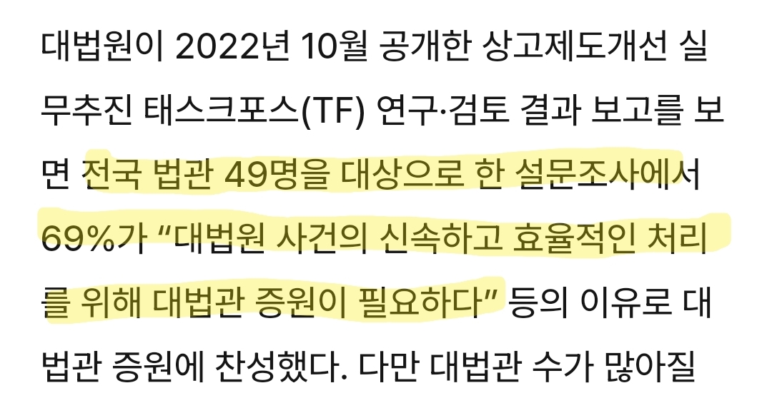 대법관의 수에 비해 사건이 너무많아 격무에 시달리므로 수를 늘려서 판결의 질을 더 좋게해야한다!!