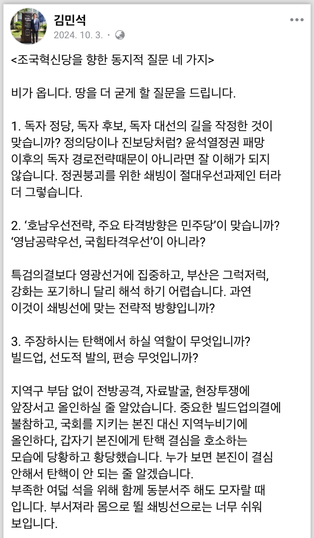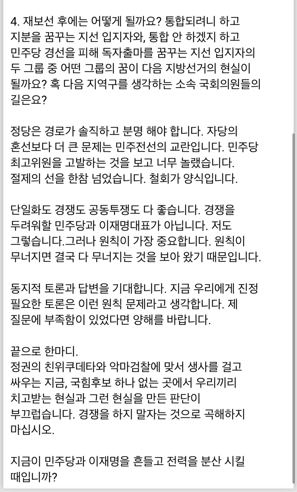 이번에 후보 안 내고 같이 해준 건 진심으로 너무 고마움 지금 당장 뭔 일도 없는데 조혁당까거나 갈라치기 여론 형성하면 리박 같은 알바일 수도 있지만 예전 일로 조혁당에 부정적인 사람은 많음