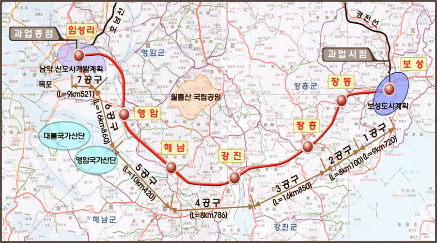 영암, 해남, 강진, 장흥은 이번에 처음으로 기차역이 생김