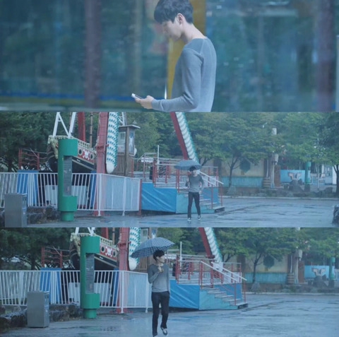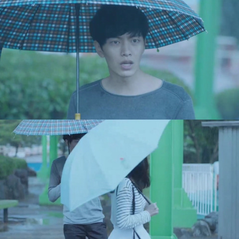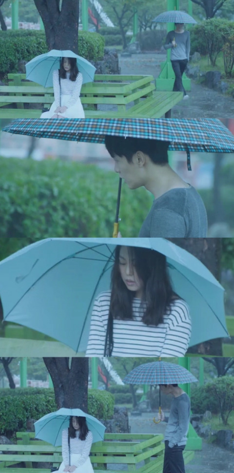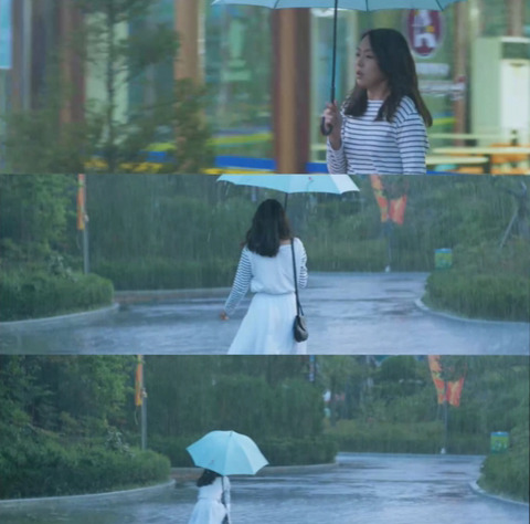 동희의 팔을 뿌리치다 그만 우산에 긁혀 손을 다친 장영.