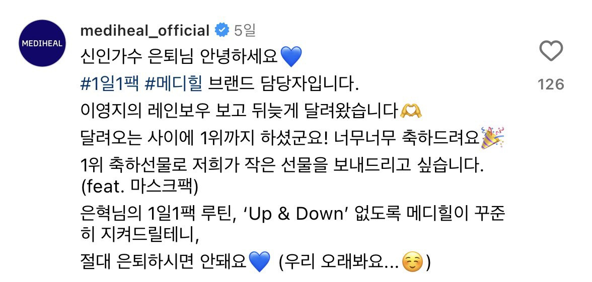 E 17살은 멕이는 거잖아요 저도 대단하게 노력하죠 저는 딱 하나예요 7,8년째 1일1팩을 하고 있어요 상표 얘기하면 안 되잖아요 메디힐이요 pic.twitter.com/wqvw53X8Ki
