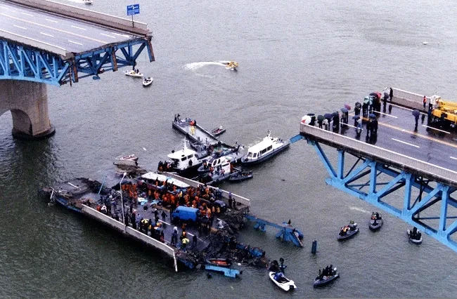 | 1993년10월 10일, 서해훼리호 침몰 사고(김영삼 대통령) | 1994년 10월 21일, 성수대교 붕괴 사고(김영삼 대통령) |