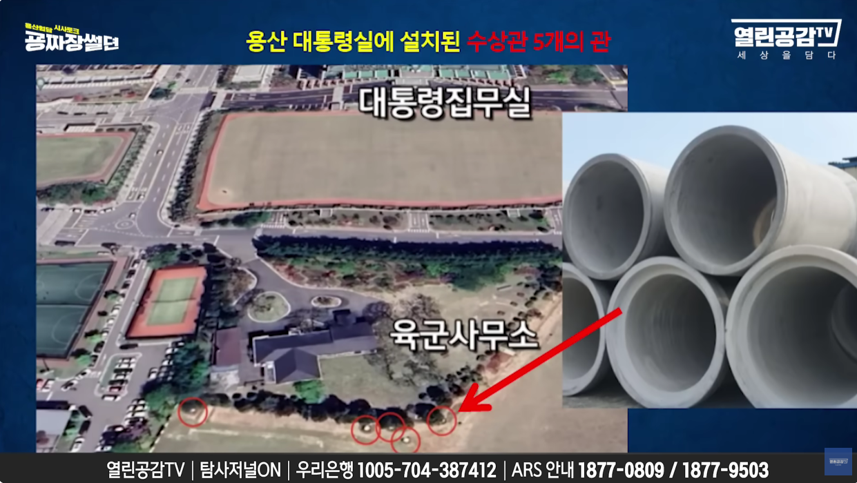 | 영상제목 & 출처 | 대통령실 앞에도? 곳곳에서 발견되는 괴상한 시설물 https://youtu.be/c4kzkNjSi34?si=WLyo9s2p445sDPft | 대통령실 괴시설물 처럼 영일만 시추공 '5개' 뚫는다? https://youtu.be/BeEqACPIrnE?si=2lzhEThFFP2IH2Fd |