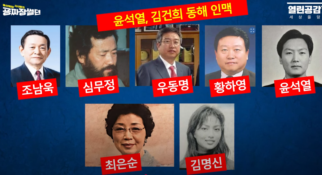 | 윤석열과 삼부토건 조남욱 (최은순, 김건희) | 주요인맥 관계도 (영화에서 황하영+건진법사+천공 1명이 연기) |