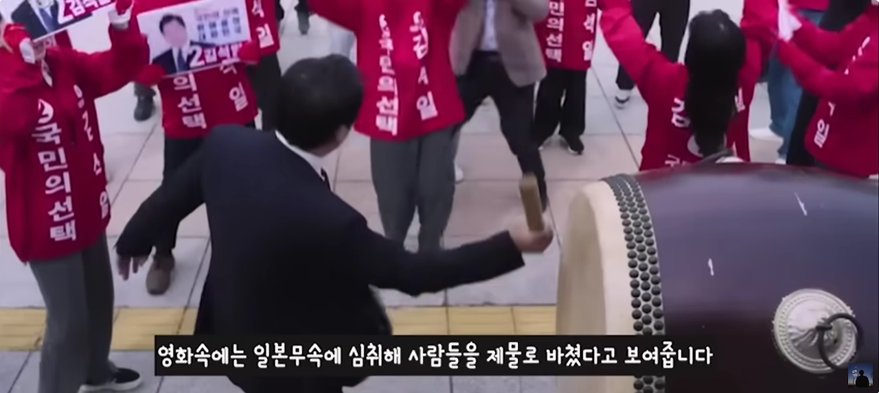 | 김석일 승전고 퍼포먼스 | 윤석열 승전고 퍼포먼스 |