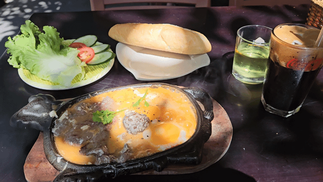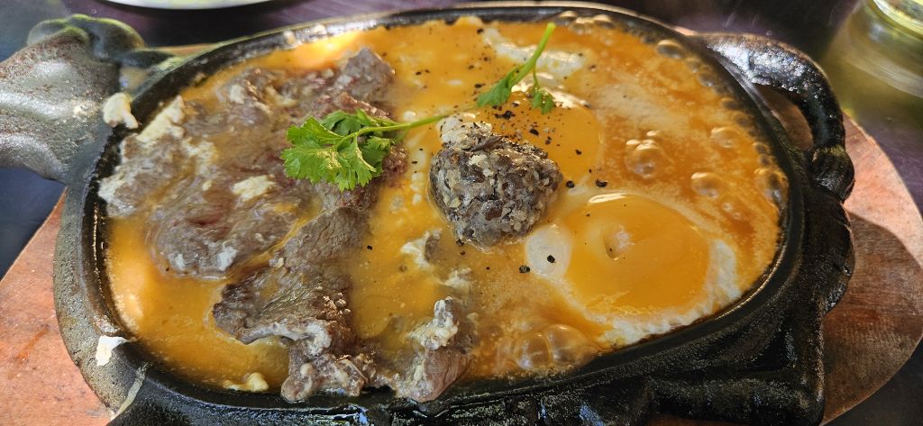 조식으로 먹은 보네스테이크 (소고기+미트볼+계란2개)세트 3500원