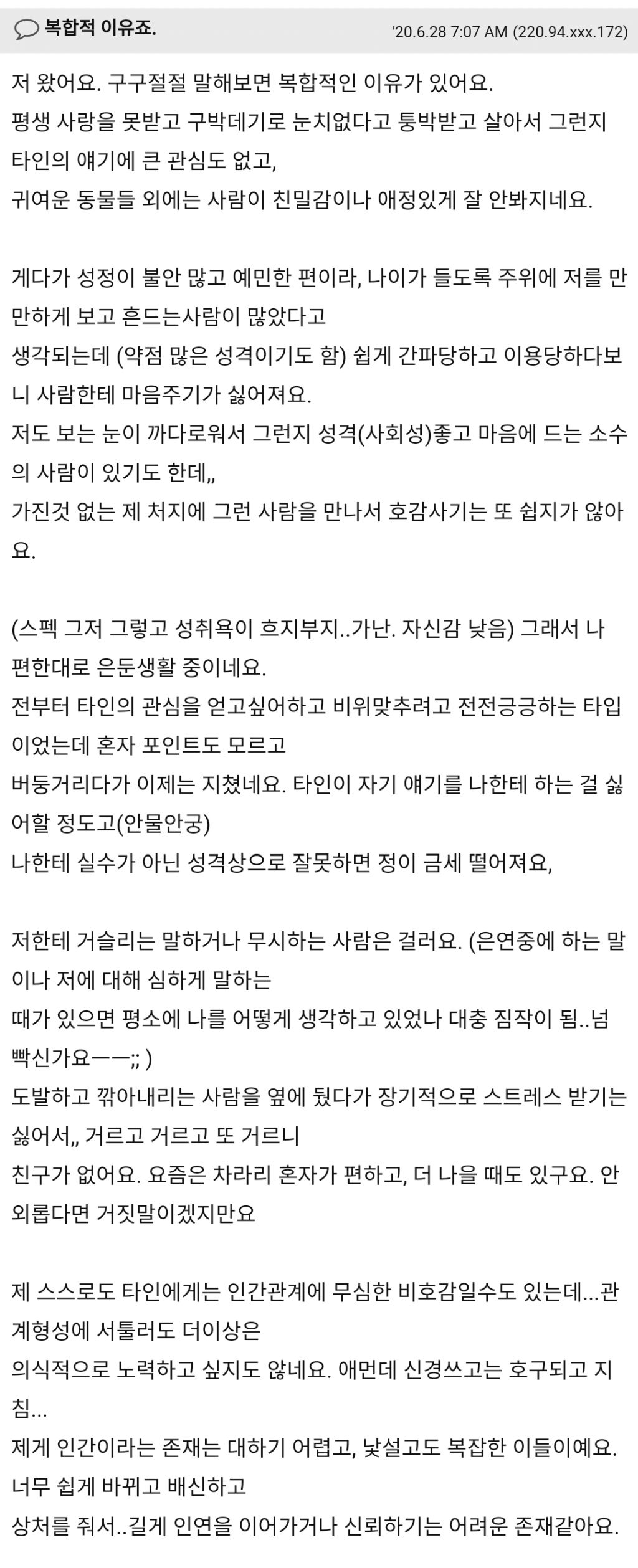 작성시간 25.06.23 나이들면 들수록 서로 대화 소재도 달라서 할말도 없고... 귀찮아 걍 회사사람들한테 사회생활 하는걸로 사회성 유지중