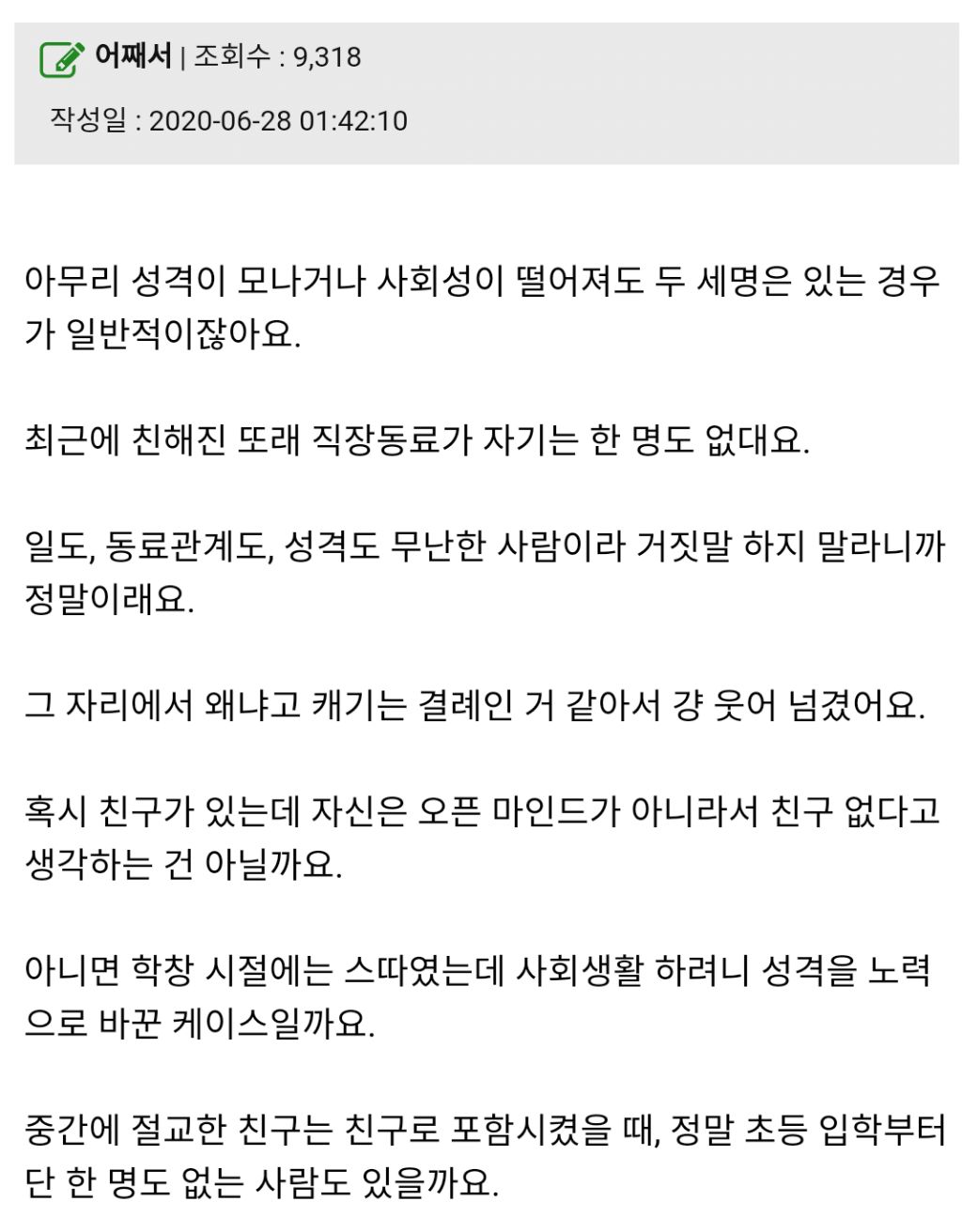작성시간 25.06.23 학창시절과 달리 나이들면서 같이 얘기나눌 친구가 없어져 ㅠㅠ 각자 사느라 바빠서.. 나도 없는데 불만은 없음