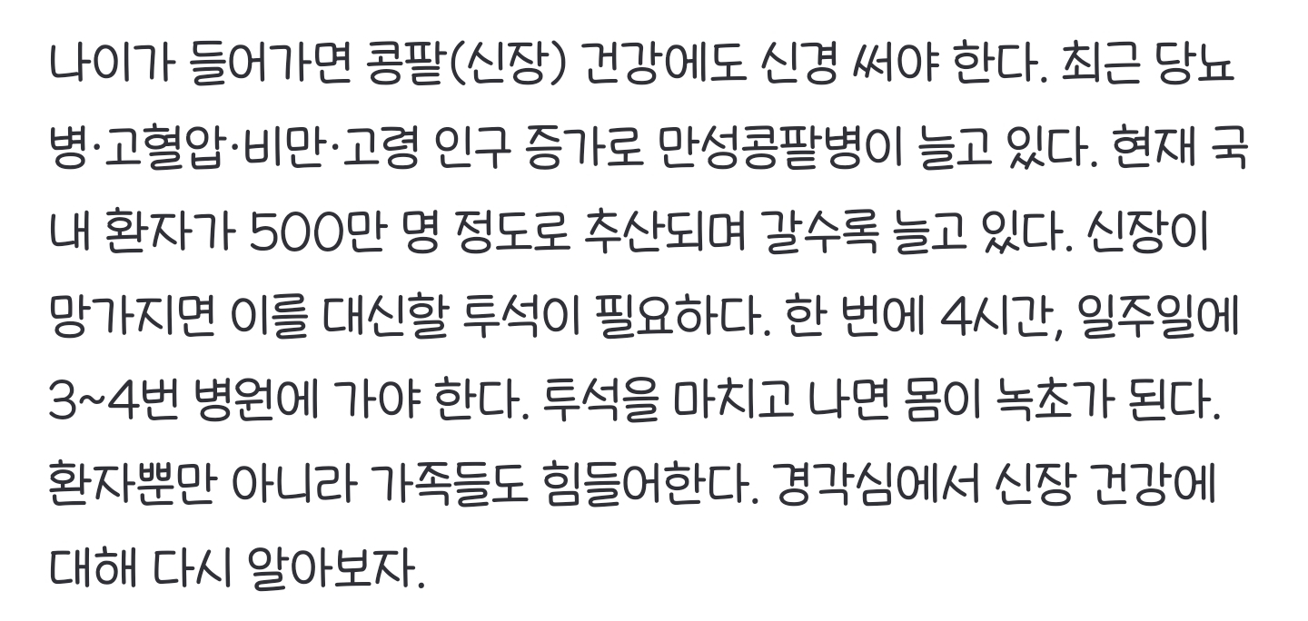 [여시뉴스데스크]환자, 가족 다 힘들다. 신장 망가지니 ‘이런 일’이…콩팥에 최악인 습관은?