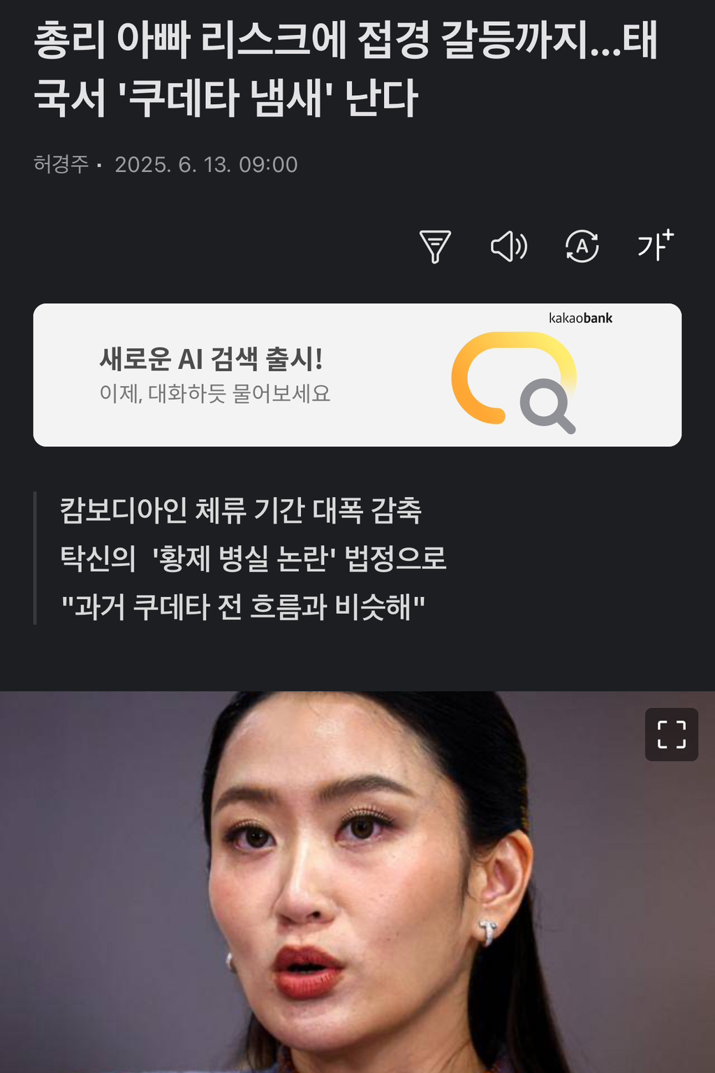 작성시간 25.06.25 태국은 원래 왕실이 ㅂ,ㅅ이라 툭하면 쿠테타 일어나고 왕실이 하지말라면 깨갱하고 반복하잖음 왕실이 너무 위에 앉아있어서 정부가 힘을 못써서 체계가 안잡혀있는듯