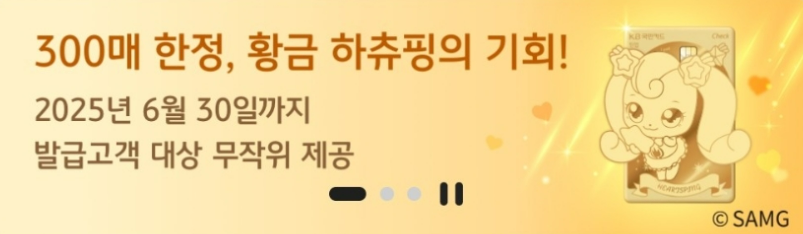 티니핑 카드는 6핑 랜덤으로 발금되며 황금 하츄핑 카드는 300명 한정임