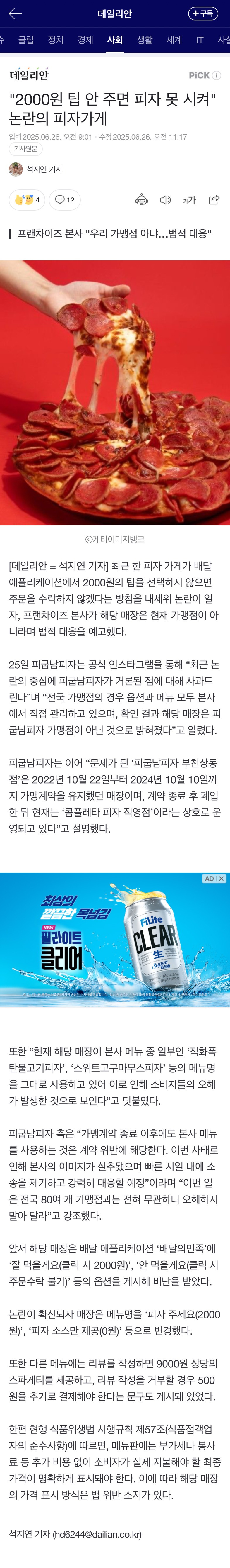 [여시뉴스데스크]"2000원 팁 안 주면 피자 못 시켜" 논란의 피자가게 (고소엔딩..)