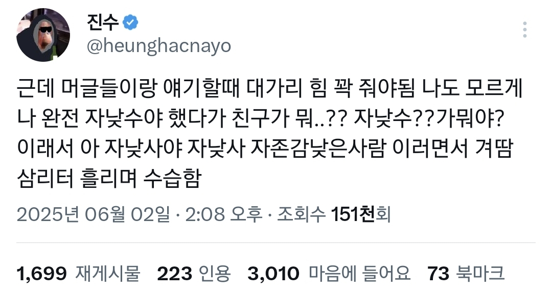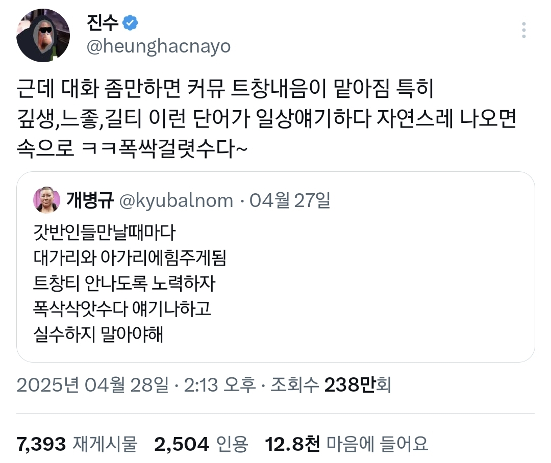 작성시간 25.06.28 근데 나 트윗안하는데 저런거 다알아 ㅎ