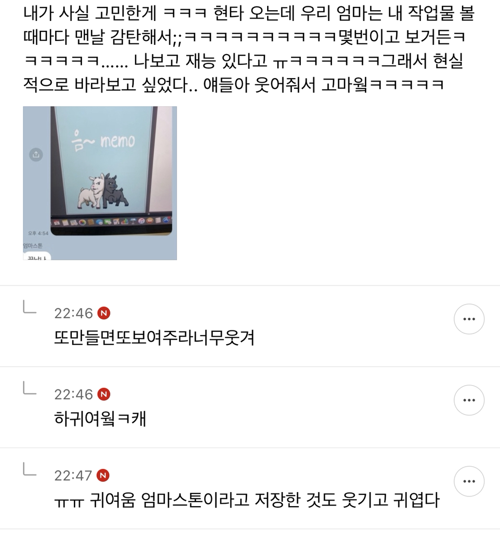 작성시간 25.07.03 ㅋㅋㅋㅋㅋ아 근데 난 처음꺼도 재능 있다고 생각하는데 ㅋㅋㅋㅋ