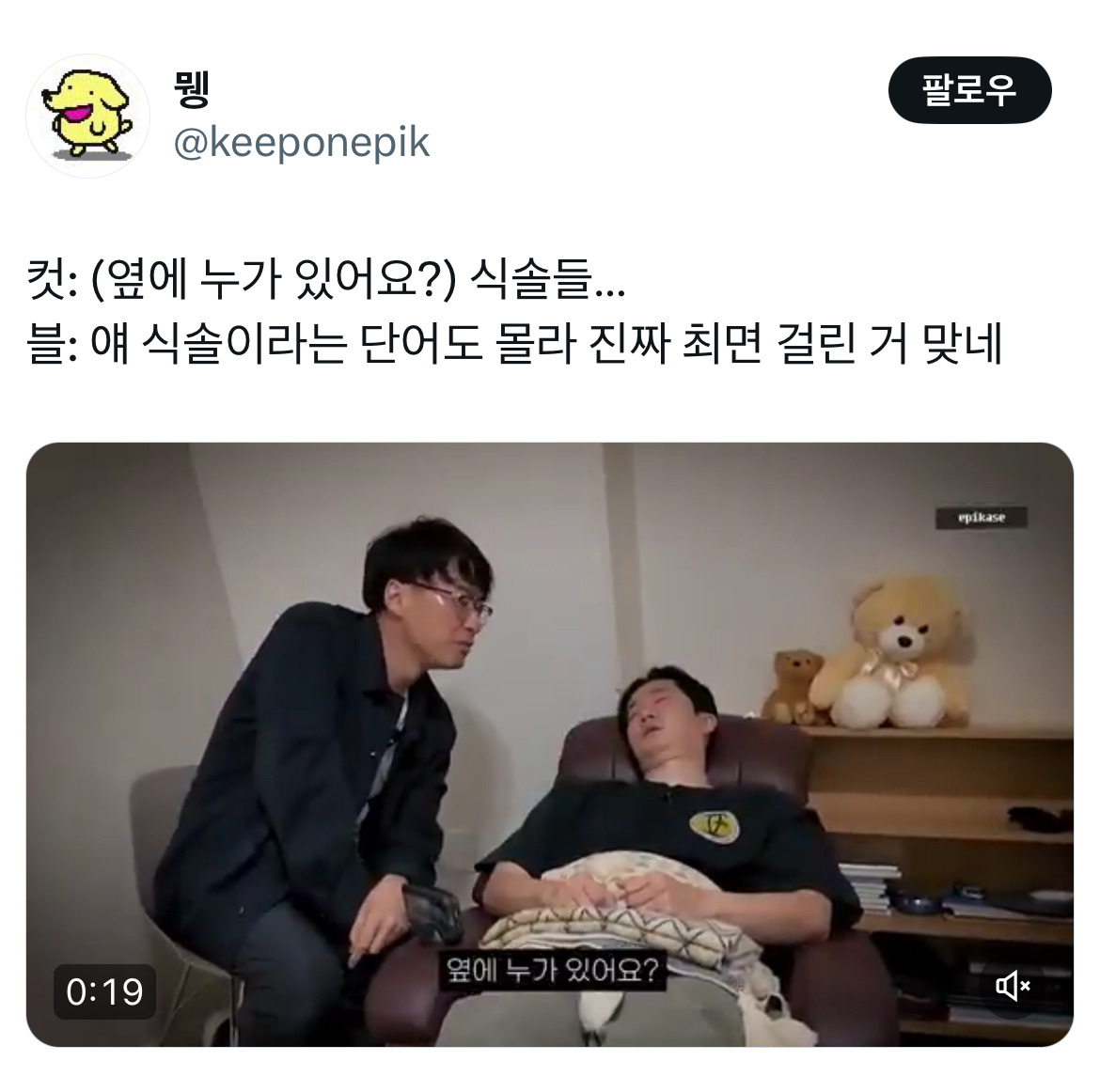 한국인이 좋아하는 속도로 꾸짖기 pic.twitter.com/uqd8b7tfY3