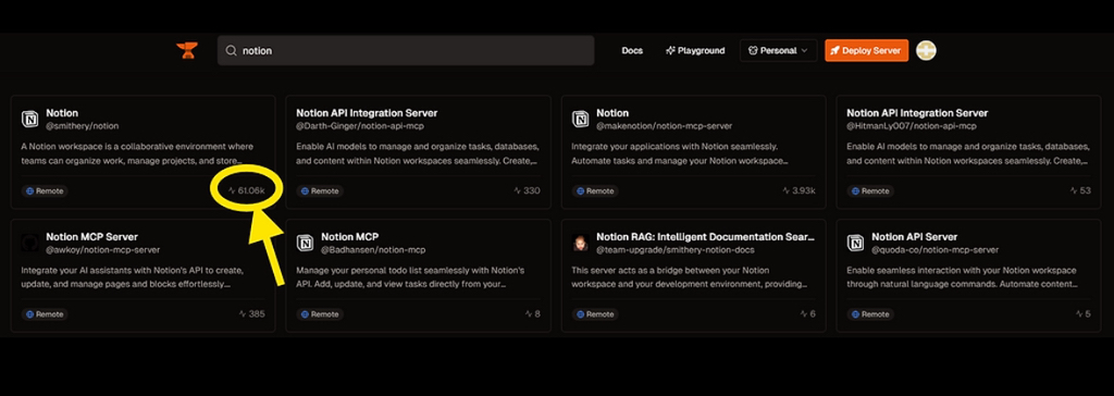 Smithery 에서 MCP를 고를 땐, 다운로드 횟수를 기준으로 고르면 됩니다.