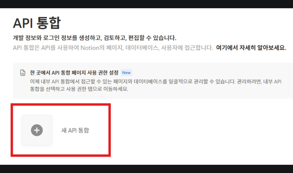 새 API 통합 버튼(+) 을 누릅니다.