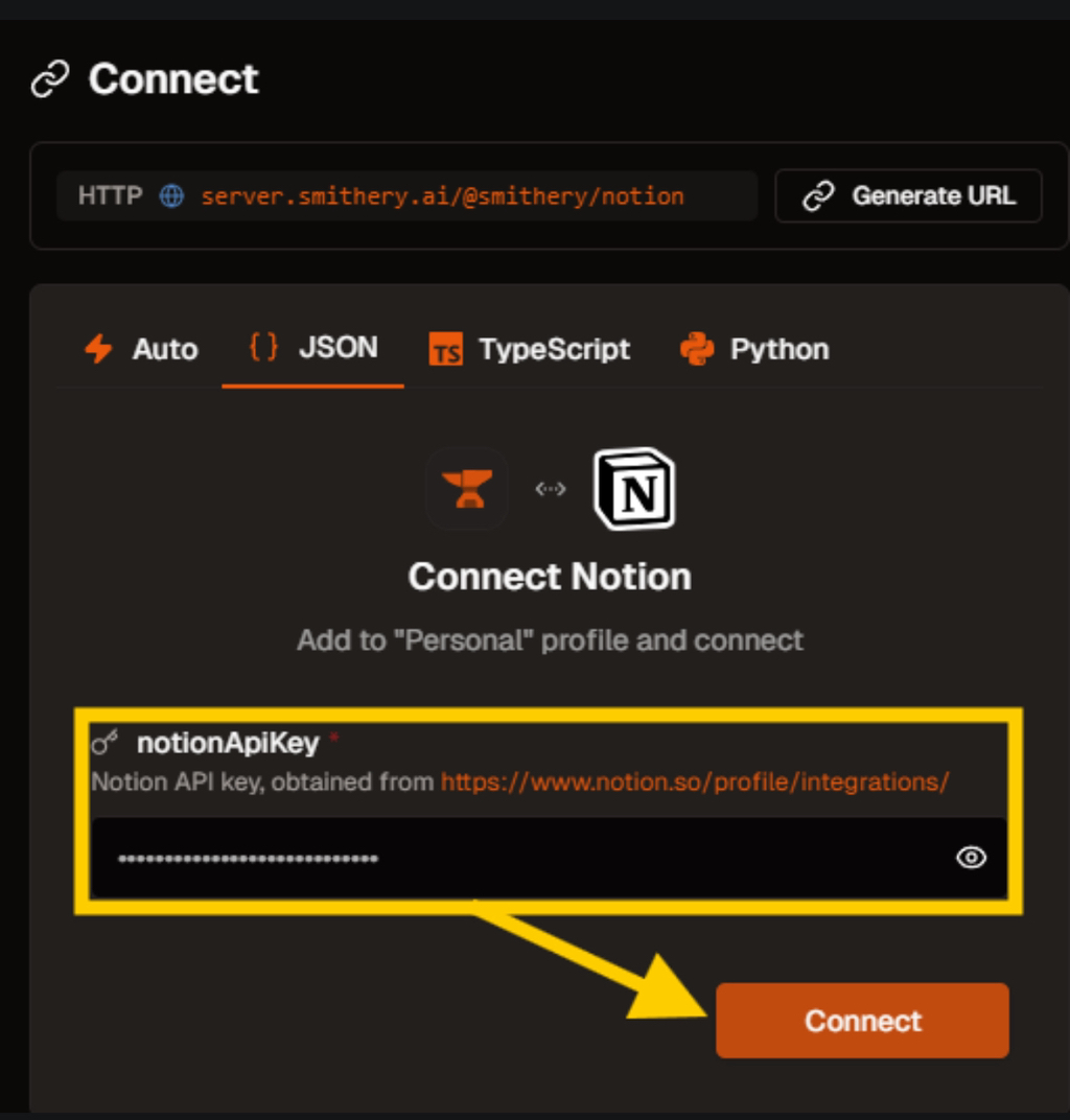 notionApiKey 를 입력하라고 나오는데요,