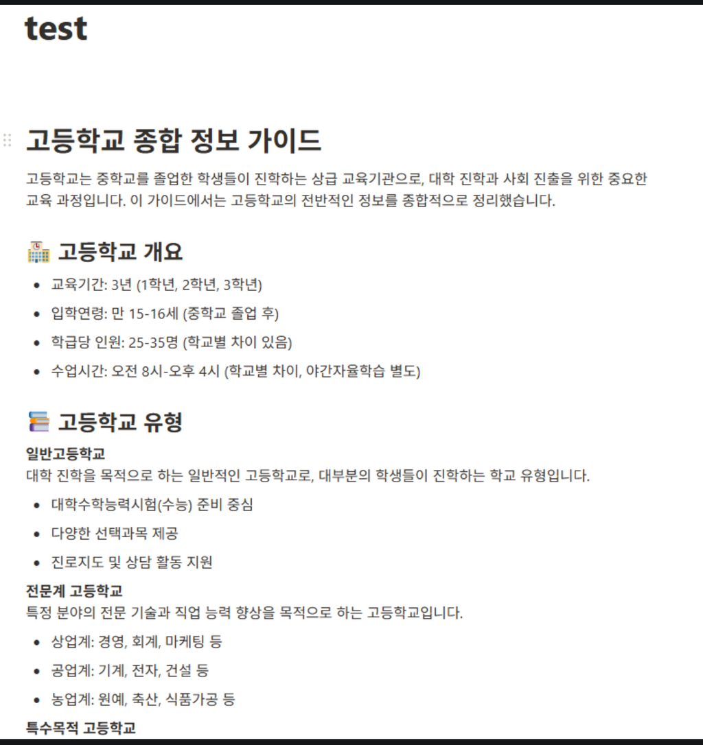 알아서 페이지를 작성한 모습입니다.