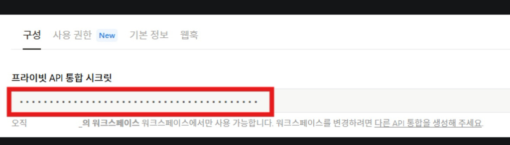프라이빗 API 통합 시크릿 키를