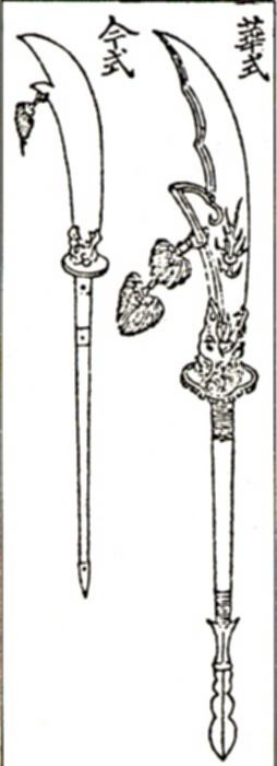 낫에서 착안했지만 실전성이 떨어져서 의장용 무기로만 쓰였을 가능성이 높다고함