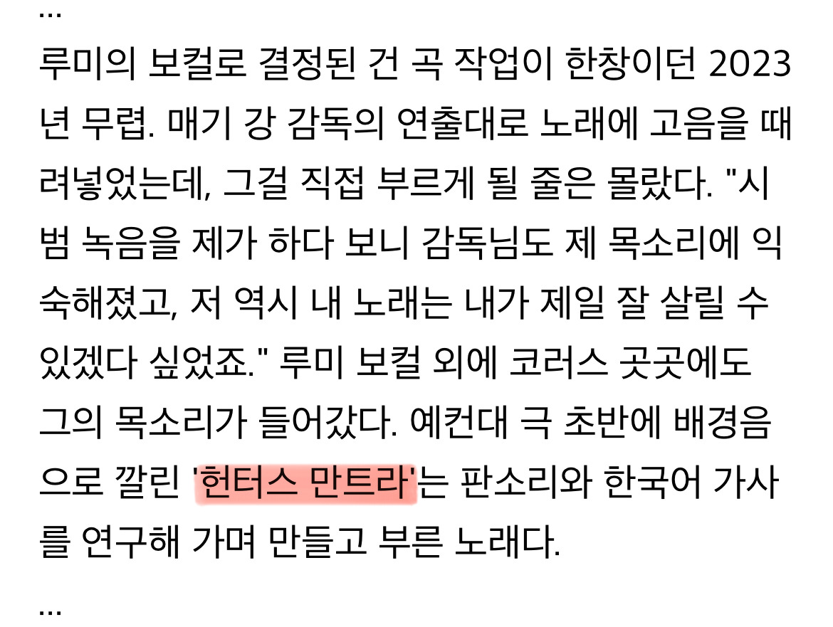 케데헌 작곡가 EJAE님 인터뷰에서 발견