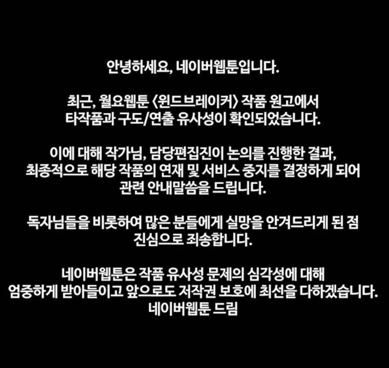 네이버웹툰 측도 연재중단으로 결론을 내렸고 유료 에피소드를 결제한 사람들에게 환불 조치를 했다고 함
