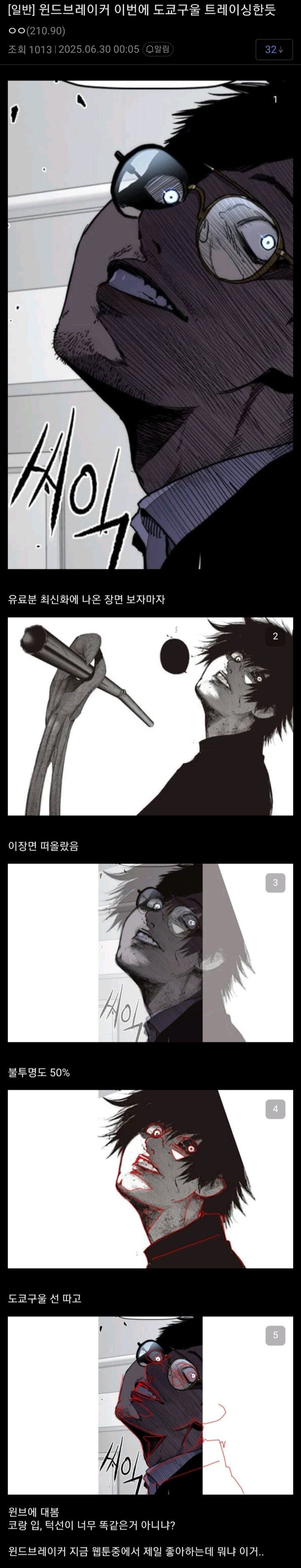 2025년 6월 30일, 일본 만화 <도쿄구울> 트레이싱 논란이 한 독자에 의해 터짐.