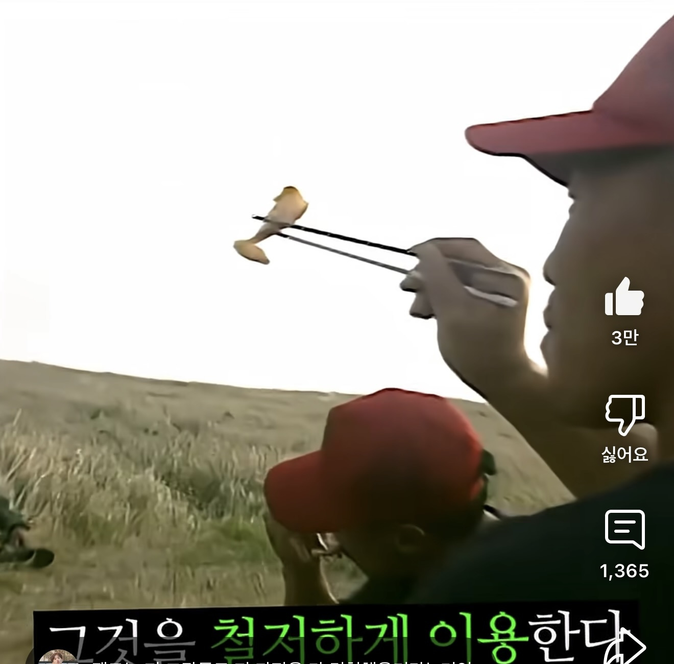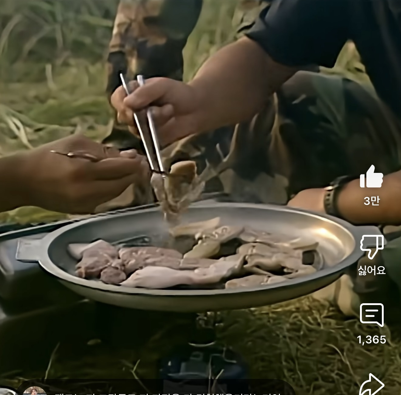 기름 튀겨가며 잘 익은 고기를 집는 교관