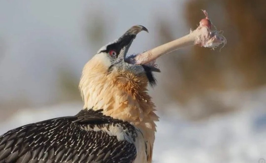 수염수리의 식사는 무려 전체의 85~90%가 뼈로 구성되어 있다.