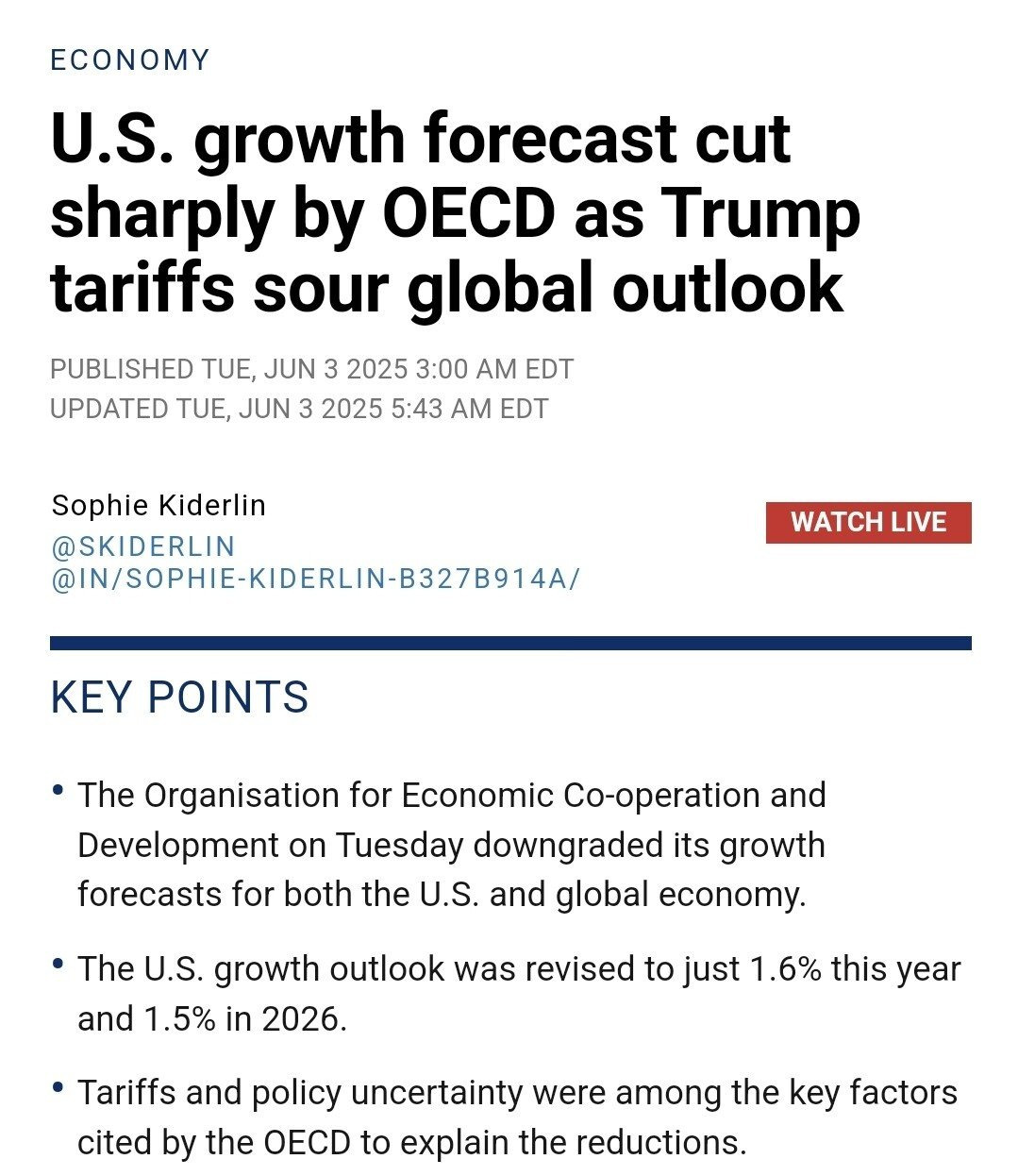 [ 트럼프 관세전쟁 전만해도 미국 성장률은 견조한 2% 대 성장 예상중이었으나 1% 대로 하락 ]