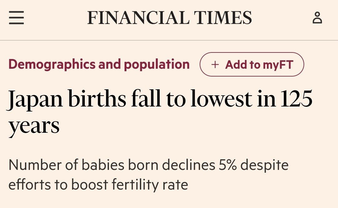 그리고 이번 파이낸셜 타임즈에서도 얘기했듯 이미 일본의 출산율과 고령화는 19세기 이래 최악의 수준으로 돌아올수 없는 강을 건너온 상황이라 진단되고 있음.