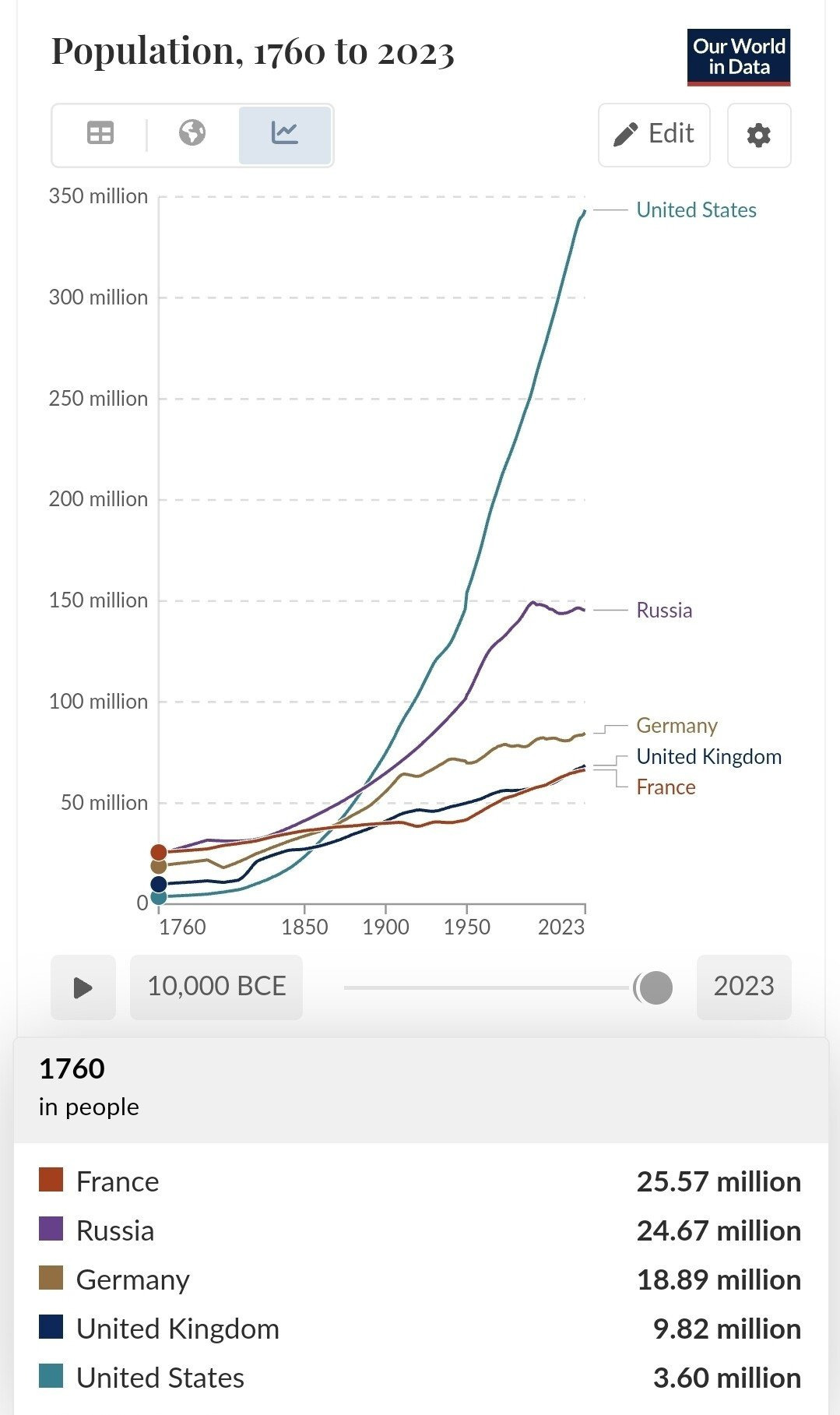 [ 프랑스, 러시아, 독일, 영국, 미국 인구 변화 ]