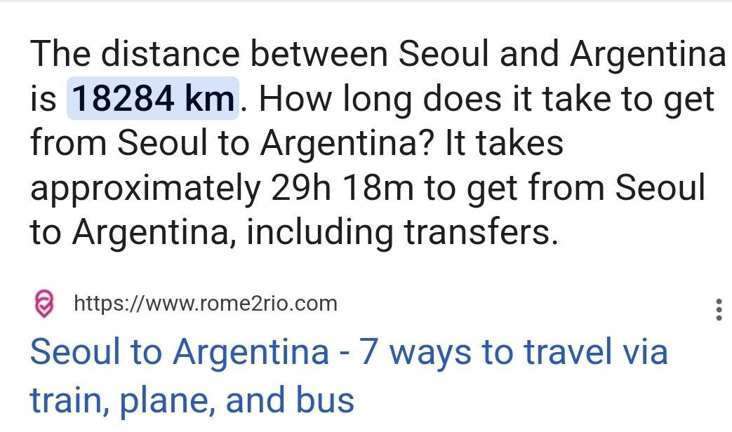 [ 서울 - 아르헨티나 거리는 서울 - 프랑스 거리의 2배 수준 ]