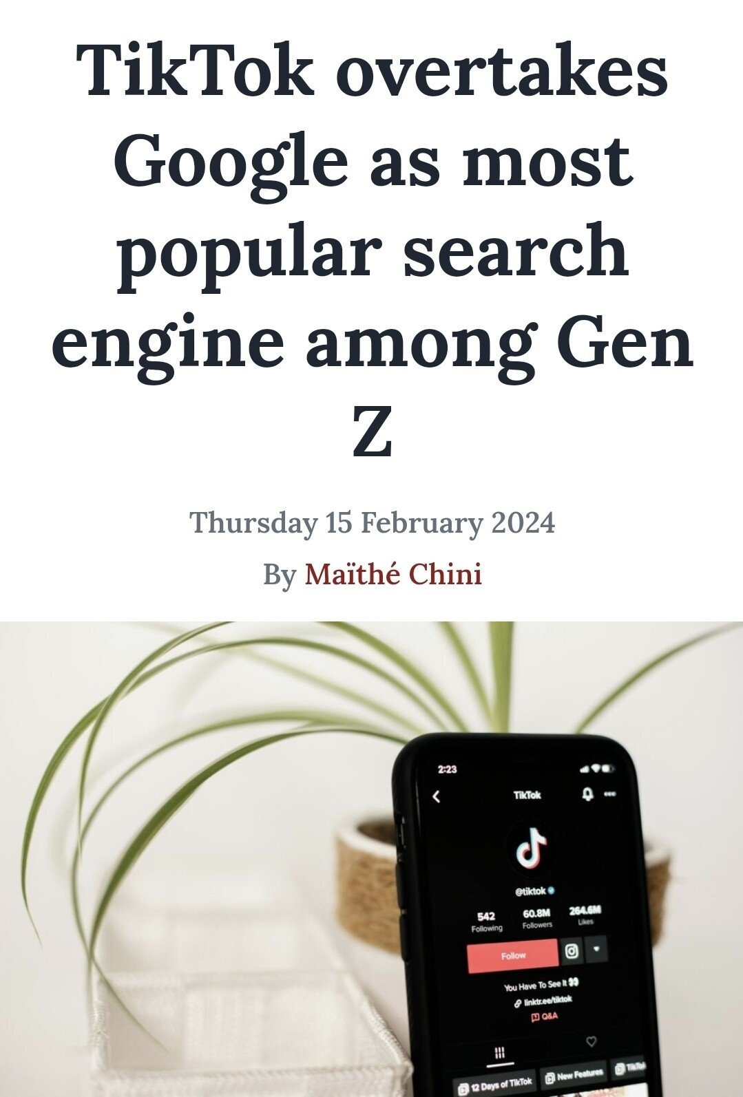 [ 이미 미국 유럽 젊은 세대에선 틱톡이 구글 검색량조차 추월함 ]