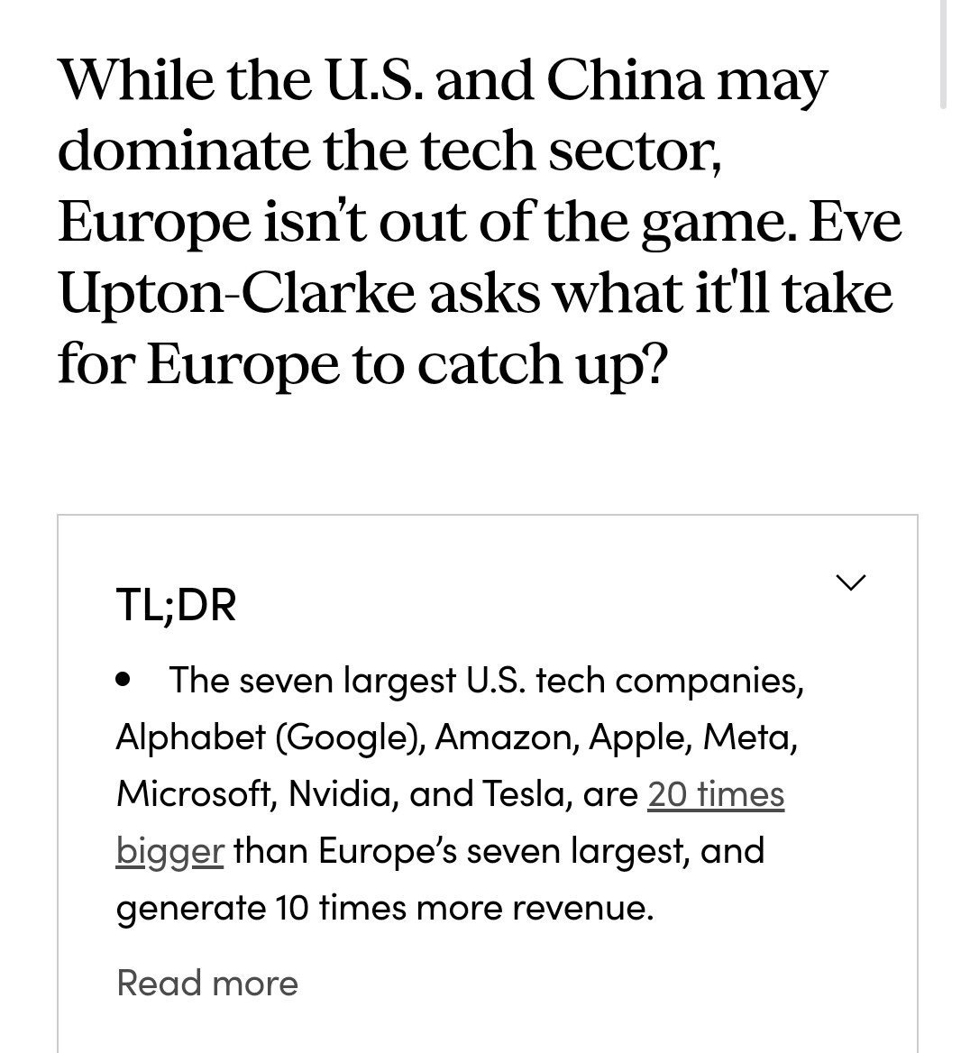 [ 미국의 7대 테크 기업이 유럽의 7대 테크 기업보다 20배 이상 큼 ]