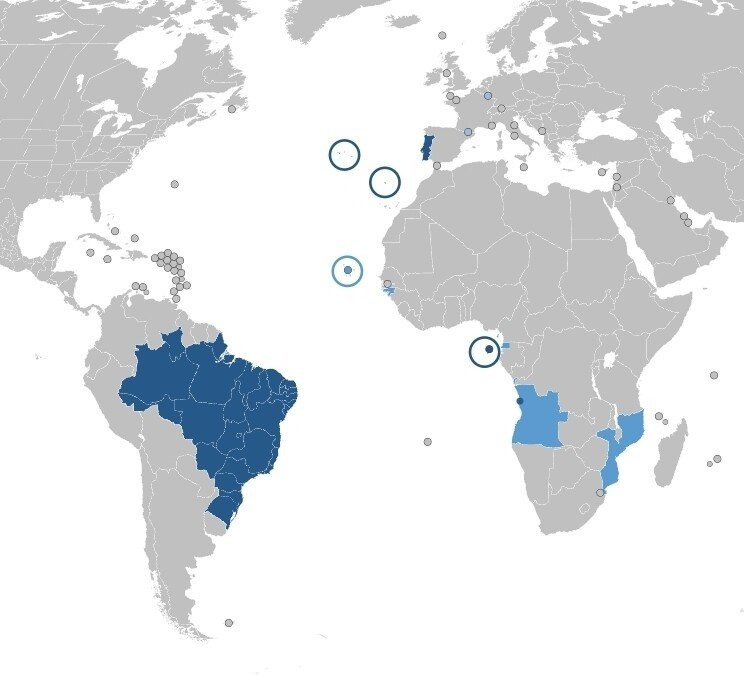 미국이 있다고는 하지만 그 미국과도 거리가 약 7000km로 이는 한국에서 동유럽까지 거리로 만만치 않음. 그렇다면 문화적으로 포르투갈어가 뜰 요소가 있는가 하면 이것도 애매함.