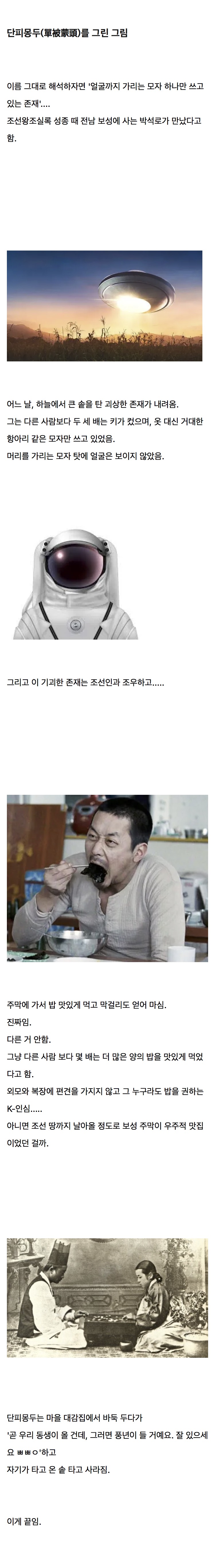 "구례현(求禮縣)에 사는 백정 박석로(朴石老)가 요사스런 말을 지어서 말하기를, ‘보성군(寶城郡)에 거주하는 부자로 사는 사람의 집에 귀신이 있는데, 사람 모양 같고 키가 한 길이 넘으며 몽두(蒙頭)만 쓰고 하늘로부터 내려왔다 하며, 그 집 사람이 늘 식사 때마다 한 말의 쌀로 밥을 지어 먹였더니, 귀신이 말하기를, 「나의 아우도 또 내려오는데, 오면 큰 풍년이 들 것이다.」라고 하였다.’ -성종실록 1년 8월 3일