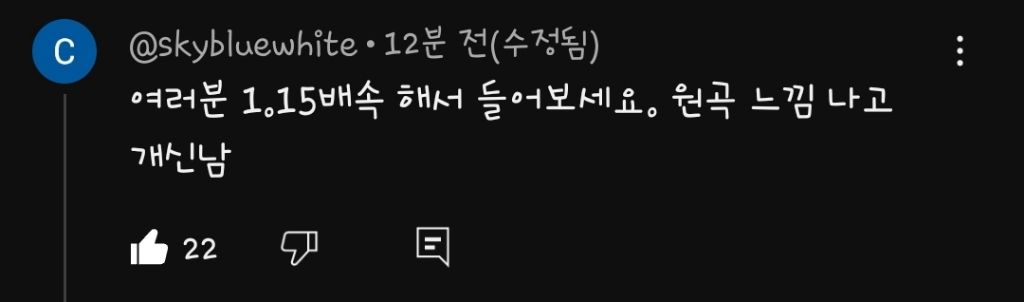 1.15배속으로 들어봐!! 진짜 원곡느낌나고 개신남!!!