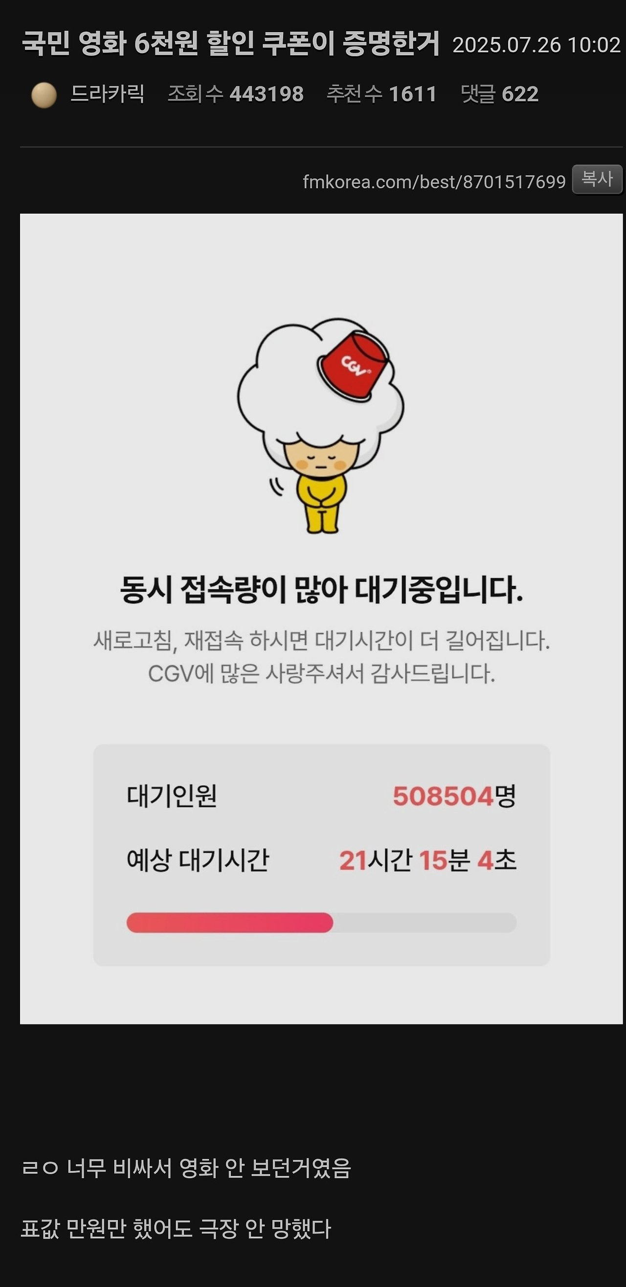 영화관 회사들 진짜 개멍청한듯 가격 내리고 관객 늘려서 실적 높인다 답이 나와있는데 왜 안하는거지