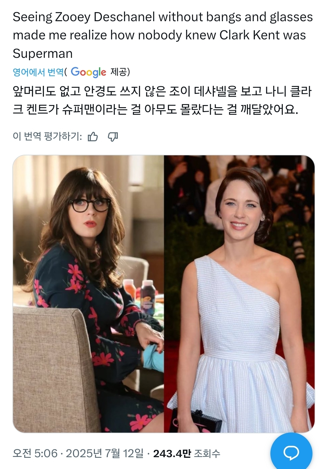 [흥미돋]안경썼다고 슈퍼맨 못알아보는게 이해됨 작성자vjalmanz|작성시간25.07.27|조회수152,703 목록 댓글 27 글자크기 작게가 글자크기 크게가 출처: https://x.com/VHSDVDBLURAY4K/status/1943763812576113018주이 디샤넬 앞머리 있/없 다음검색 현재 게시글 추가 기능 열기 북마크 공유하기 신고 센터로 신고 댓글 댓글 27 댓글쓰기 답글쓰기 댓글 리스트 작성자일단아무거나입력 | 작성시간 25.07.27 와 진짜 못알아보겠다 작성자셈니 | 작성시간 25.07.27 와 위는 ㅖ이티페리 닮은꼴로 우명한 사진인데 밑 사진은 케이티 체이 당ㅁ지도 아노음ㅋㅋㅋㅋ 완전 목알아보겠다 작성자행복가득가득만땅 | 작성시간 25.07.27 거의 김풍급인데 이미지 확대 작성자우측통행하세요 | 작성시간 25.10.30 인스타 안경 비포앤애프터 보면 이런 경우 천만명 있음 작성자에릭 사티 | 작성시간 25.10.30 썸머....?! 댓글 전체보기