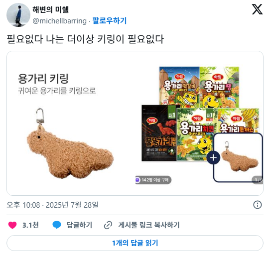 작성자행복가득가득만땅 작성시간 25.07.30 아 키링만 사고 싶은데 ㅠ... 용가리 한팩 정도면 충분하닧오요 ㅠㅠ 너무 많슨 ..