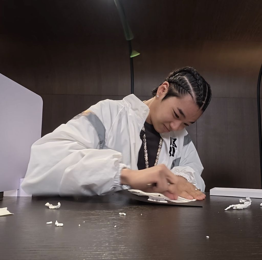 갑자기 원형 종이를 냅다 갈기갈기 찢음
