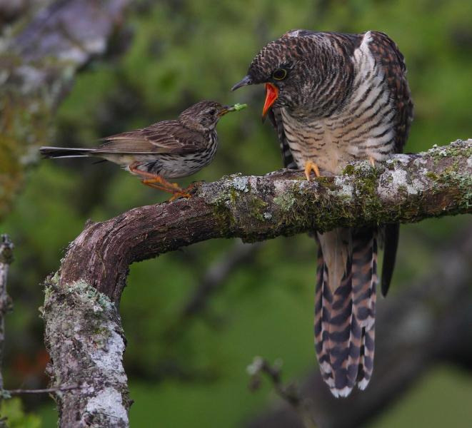 (자신보다 훨씬 큰 뻐꾸기 새끼에게 정성껏 먹이를 갖다주는 어미새들)