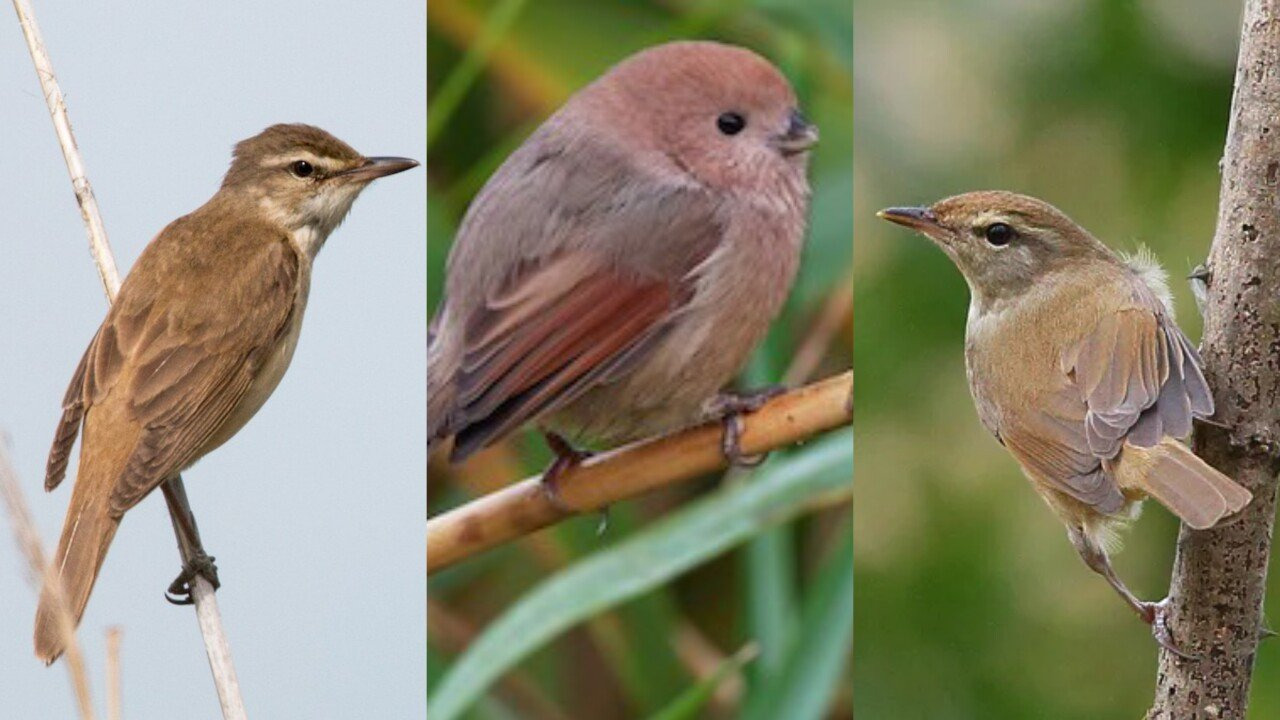 (주로 탁란을 당하는 피해조 모임. 왼쪽에서부터 개개비, 붉은머리오목눈이, 휘파람새)