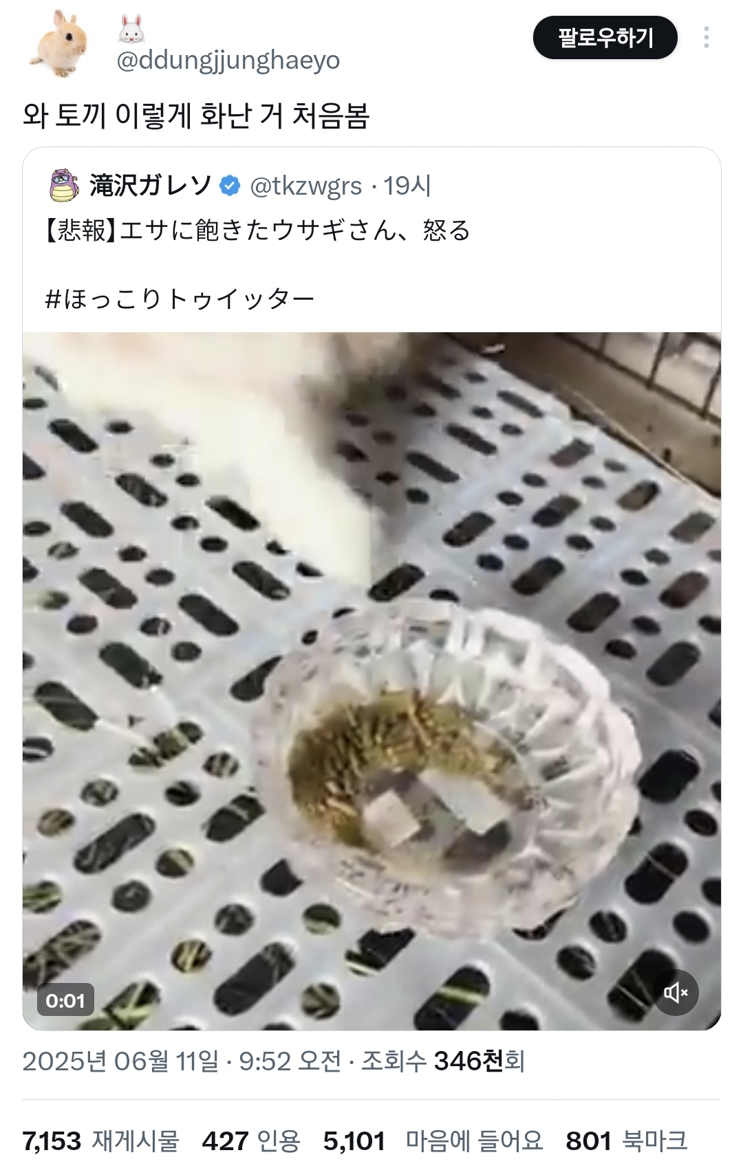 【悲報】エサに飽きたウサギさん、怒る#ほっこりトゥイッター pic.twitter.com/lylW1KbaCI