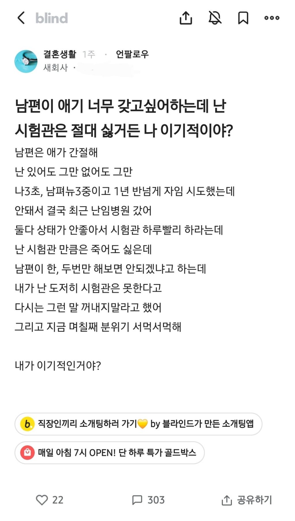 작성자커피포리 작성시간 25.08.14 이것도 뭐랄까 강요같아 결혼안하면 안되고 출산안하면 안되고 시험관 안하면 안되고 뭐 이런 강제 시험관 한 친구들 보면 남자문제야 정자활동성이 없고 수가 적고 .. 고생은 여자들이 하고 애 안생기면 여자가 나이가 많은거 아니냐 소리나 듣고