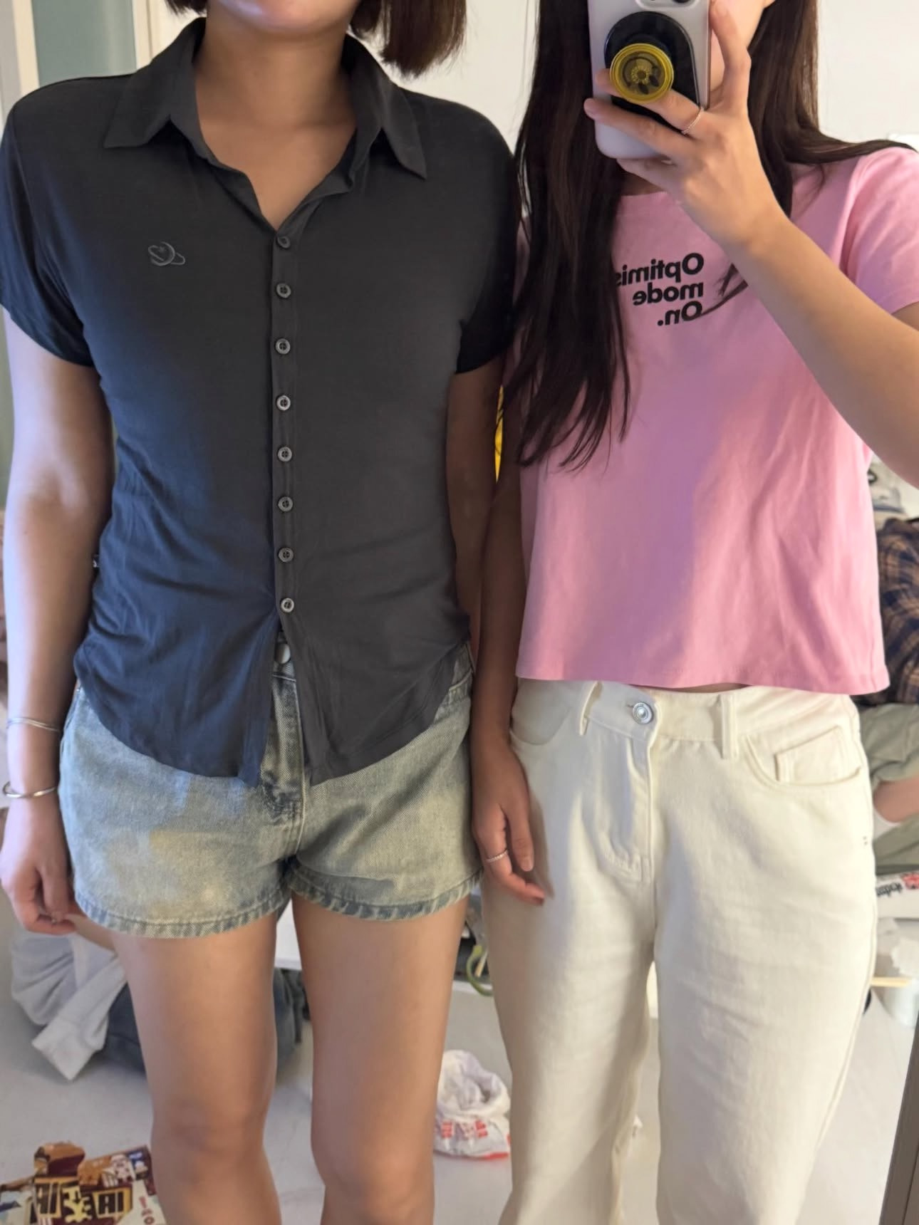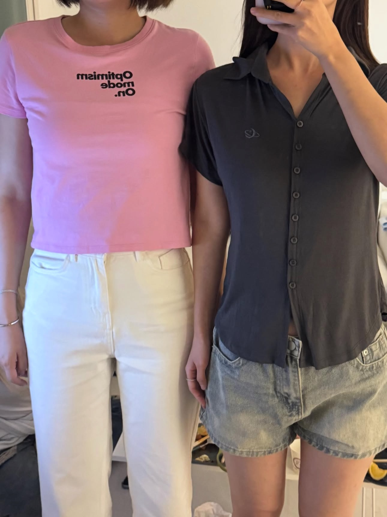 크롭반팔티 입으면 첫번째 사진 존똑임 네모인간이 되..