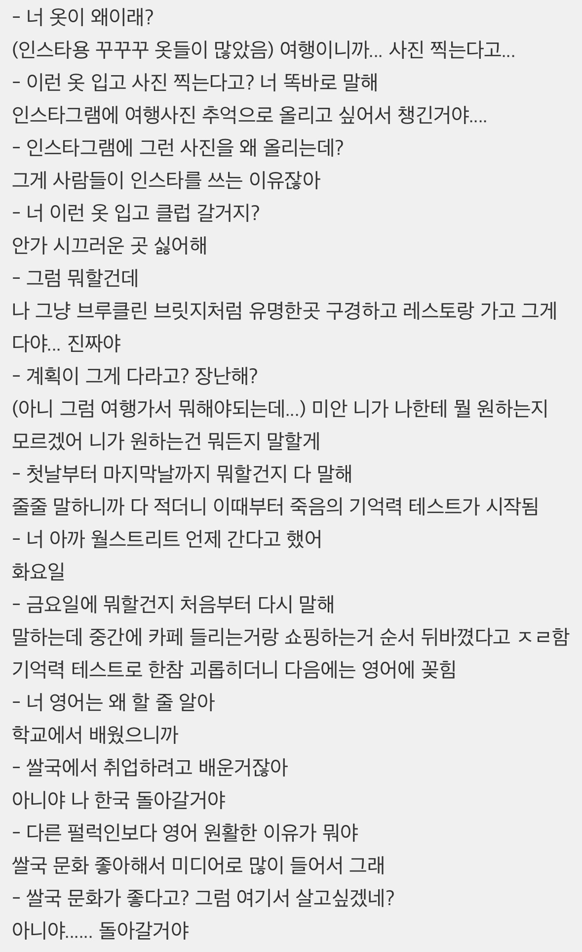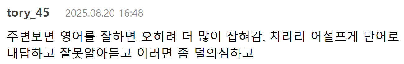 작성시간 25.08.27 영어 잘 못하고 탈코오브탈코인데 거의 혼자임ㅠ 혹시 나중에 진짜 갈일 생기면 그놈의 여행객복장 해야하나 근데 여행객복장이 뭐지